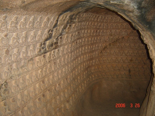 位于荣成市人和镇响湾村铁槎山主峰清凉顶北部半山腰天然石壁,人工凿成。洞口向南,平面呈椭圆形,中设塔心柱,高2、阔4、进深6米。洞口上方有明万历四年(1576年)刻“千真洞”三字,内雕佛像1006尊(原为千佛洞)。据槎山云光洞元代至正七年(1347年)《重修增福延寿宫碑记》和光绪年成稿、民国付梓的《文登县志》所录元至正元年(1341年)《重修望浆院碑记》,千真洞造像年代不晚于1341年。