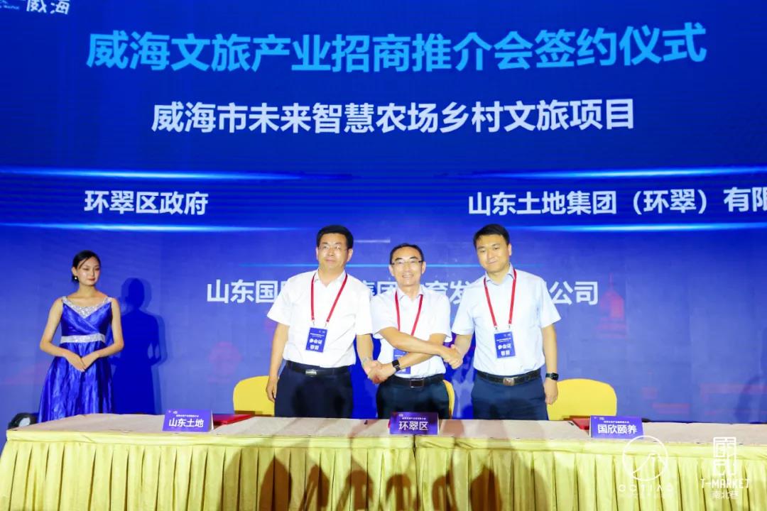 会上开展了重点投资项目签约仪式。好运角旅游度假区管委会与华夏基因及国科创融集团、环翠区政府与山东土地集团(环翠)有限公司及山东国欣颐养集团教育发展有限公司、威海九富生态旅游有限公司与电投农众(北京)物联科技有限公司、威海文旅发展集团有限公司与山东汉和文旅产业投资有限公司、威海文旅发展集团有限公司与中邦置业集团有限公司依次签署了合作协议。签约项目覆盖特色小镇、乡村振兴文旅项目、农旅融合现代产业园等多种业态,总投资超过100亿元。