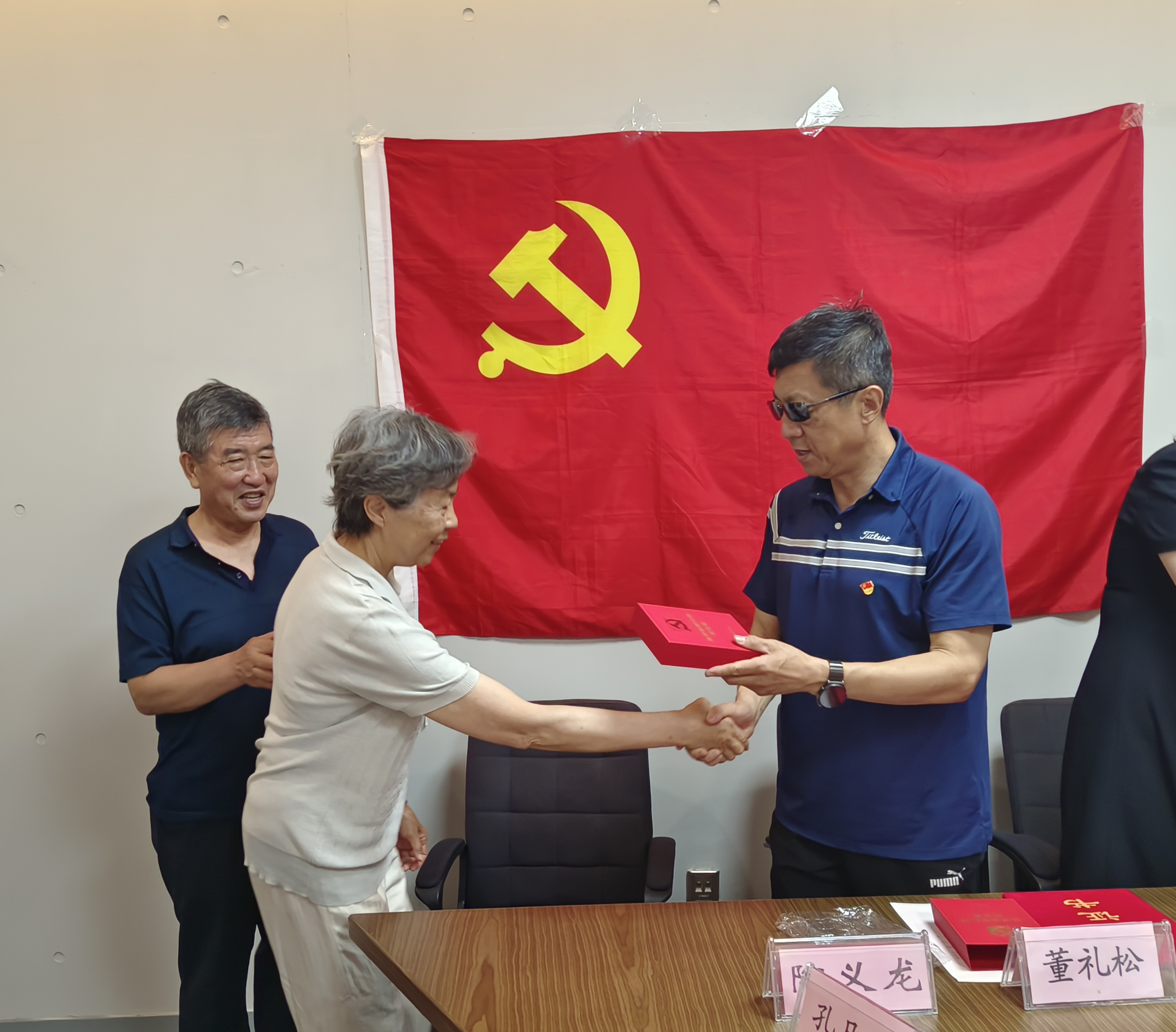 会上,市文化和旅游局党组副书记、副局长董礼松、市文化市场综合执法支队支队长张蓉分别向两名党龄达到五十年、一贯表现良好的党员孔凡玉、王茂辉同志颁发了“光荣在党50年”纪念章,感谢他们半个世纪的拼搏奋斗。随后,给7月份入党的党员代表于春建同志过“政治生日”,发放政治生日贺卡。